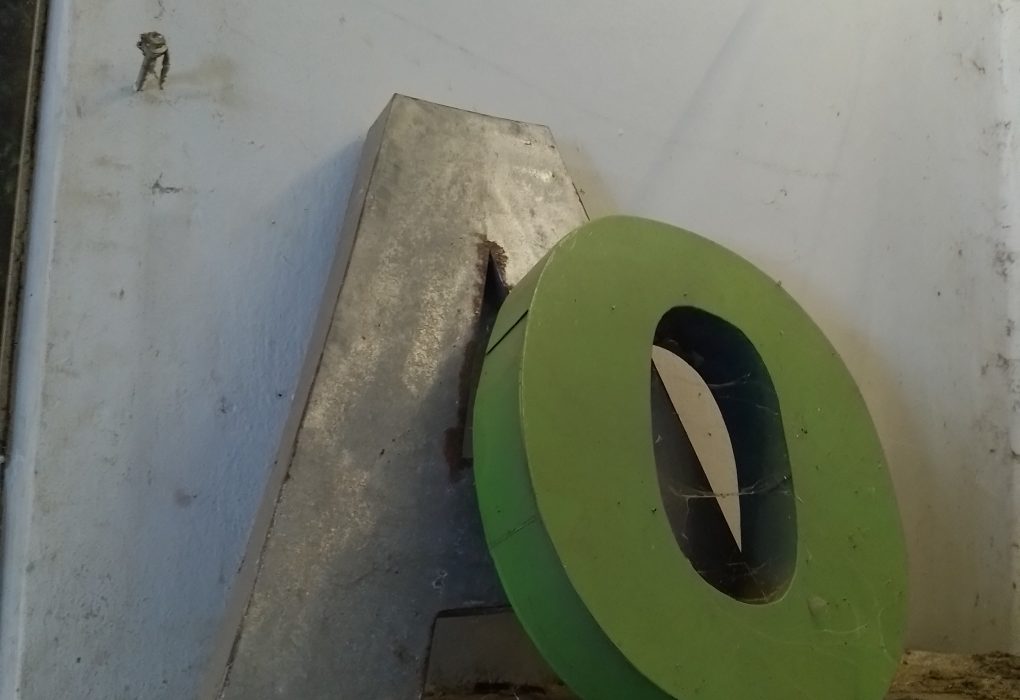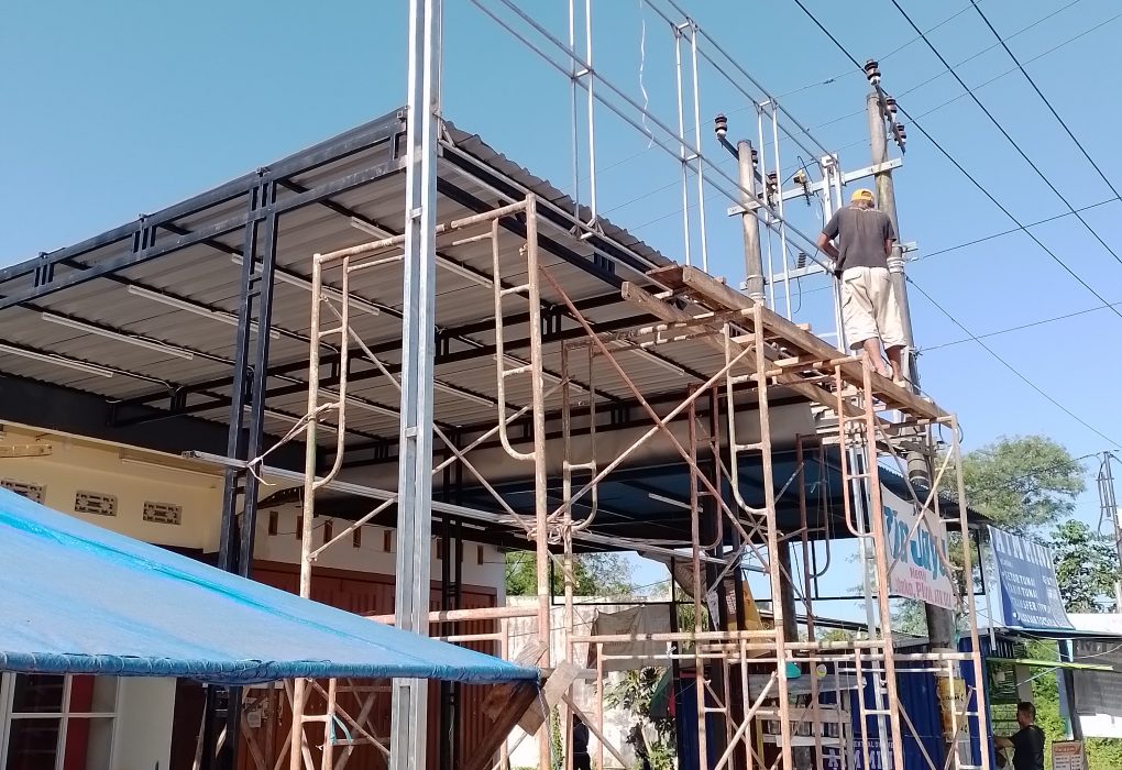 Cetak Reklame Papan Nama Usaha dari Kerangka Besi Baja Holo, Spandek, Huruf Timbul ukuran 5×1.5meter Total Rp. 15.000.000