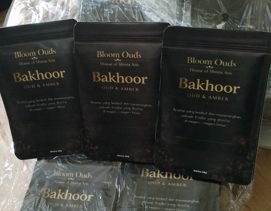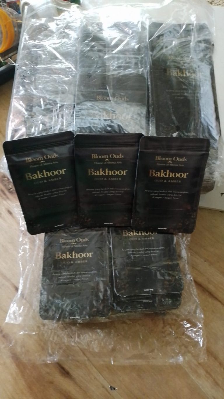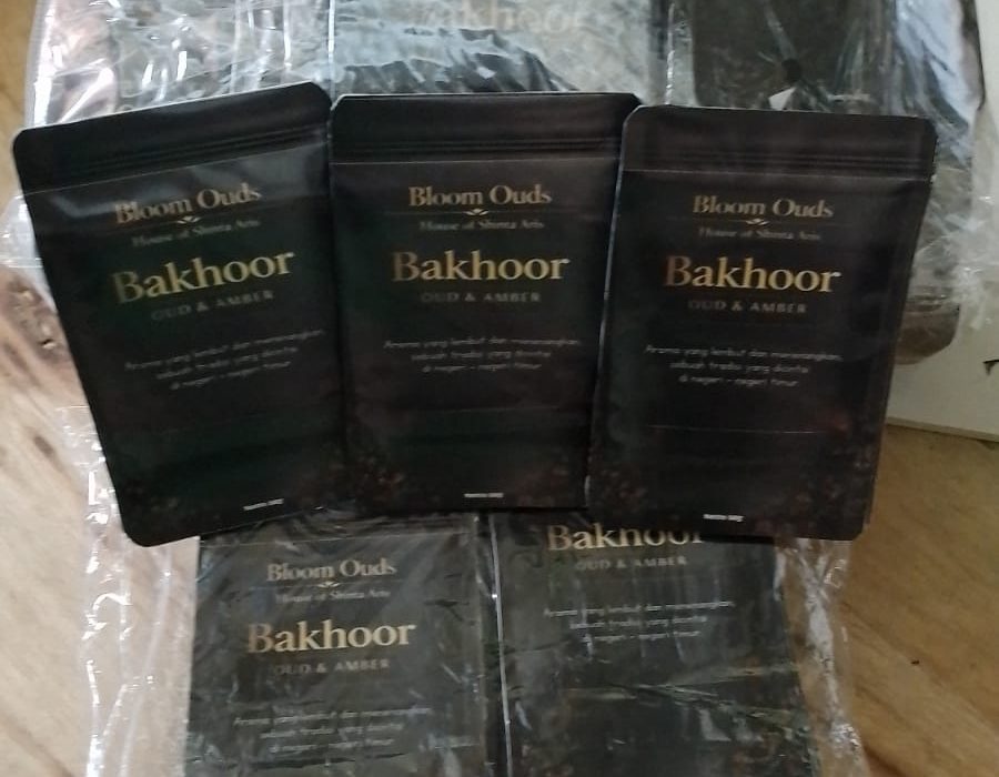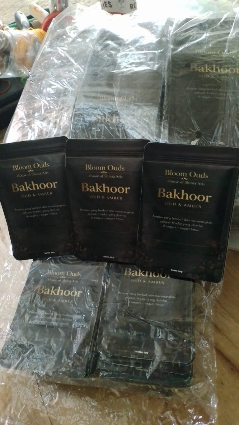 Cetak Kemasan Stiker Glossy PressDuck Produk Bakhoor Dupa Arab