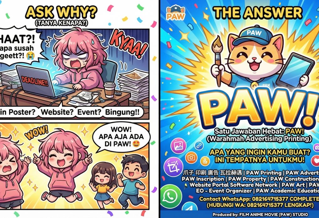 Hubungi WhatsApp 082164715377 LENGKAP! MAU BUAT APA AJA? DISINI TEMPATNYA KITA! Selamat datang di PAW Group (爪子 印刷 廣告 瓦拉赫邁)….