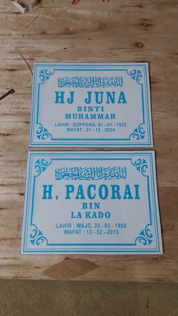 Hiasan Dinding Kepala Pemakaman dari Kaca Mika + Tehel Batu Granit Putih + UV bisa langsung tempel di tehel tempat pemakaman sekarang ada Mi pa di PAW percetakan kendari advertising kendari #percetakankendari #advertisingkendari