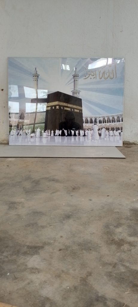 Pembuatan hiasan dinding kepala pemakaman Kaca Mika + Tehel Batu Granit Putih + UV bisa langsung di cor di tehel keramik pemakaman ukuran 80 x 60 cm Rp. 1.550.000 dan 60 x 40 cm Rp. 1.350.000