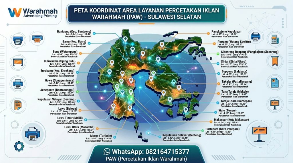 Titik Lokasi Wilayah PAW (Percetakan Advertising Warahmah) Indonesia