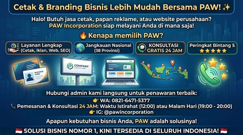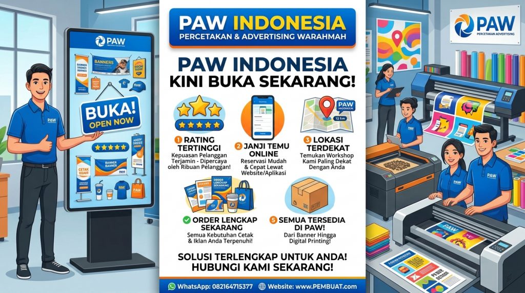 PAW Percetakan & Advertising: Spesialis cetak media promosi dan branding usaha.