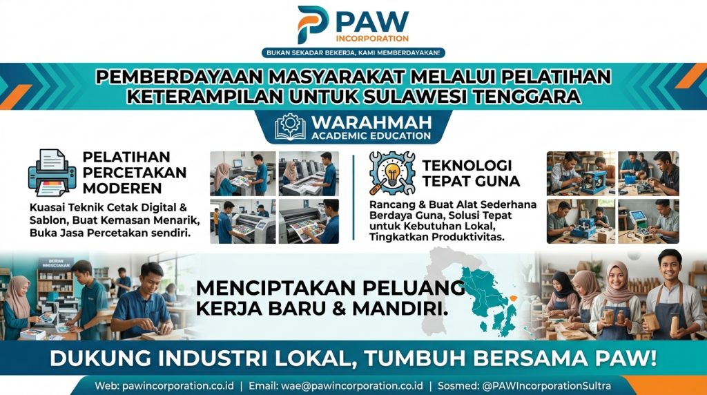 PAW (Percetakan Advertising Warahmah) adalah penyedia layanan satu atap (one-stop solution) di Kendari yang menggabungkan jasa percetakan, periklanan (advertising), hingga konstruksi. Tempat ini dikenal sebagai penyedia jasa yang lengkap, mulai dari cetakan skala kecil untuk UMKM hingga proyek konstruksi interior dan eksterior.