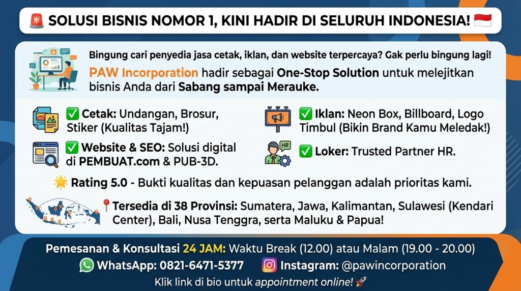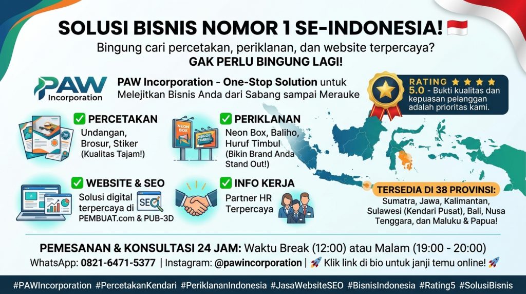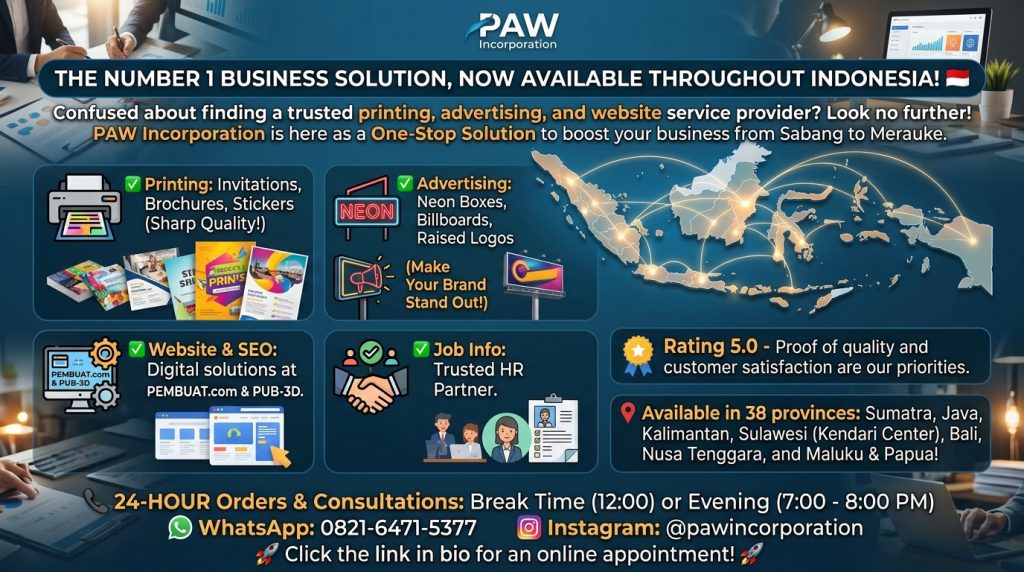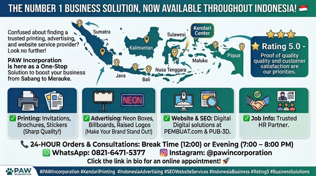 #PAWIncorporation #PercetakanKendari #AdvertisingIndonesia #JasaWebsiteSEO #BisnisIndonesia #Rating5 #SolusiBisnis
